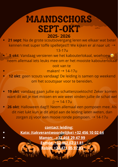 Downloads Downloads KapoenenKapoenen_2025_Oktober Published : 24/09/2025 Type : pdf Size : 3.10 MB Download Downloads KaboutersKabouters_2025_Oktober Published : 24/09/2025 Type : png Size : 338.52 KB Download Downloads Jong-GidsenJG_2025_Oktober Published : 24/09/2025 Type : png Size : 228.49 KB Download Downloads Jong-VerkennersJV_2025_Oktober Published : 24/09/2025 Type : png Size : 477.46 KB Download Downloads VerkennersVerkenners_2025_Oktober Published : 24/09/2025 Type : png Size : 274.25 KB Download Downloads WelpenWelpen_2025_Oktober Published : 24/09/2025 Type : pdf Size : 71.07 KB Download Downloads GidsenGidsen_2025_Oktober Published : 24/09/2025 Type : pdf Size : 433.61 KB Download PraktischStartdag 2025-2026 Published : 29/08/2025 Type : pdf Size : 446.88 KB Download Kentekens_naaien Published : 10/09/2019 Type : pdf Size : 642.88 KB Download Kampen / WeekendsGroepsweekend ’25 Published : 29/08/2025 Type : pdf Size : 1.60 MB Download TechniekenTechnieken_Kookvuren Published : 10/09/2019 Type : pdf Size : 239.36 KB Download Techniekenboekje Published : 10/09/2019 Type : pdf Size : 1.44 MB Download
